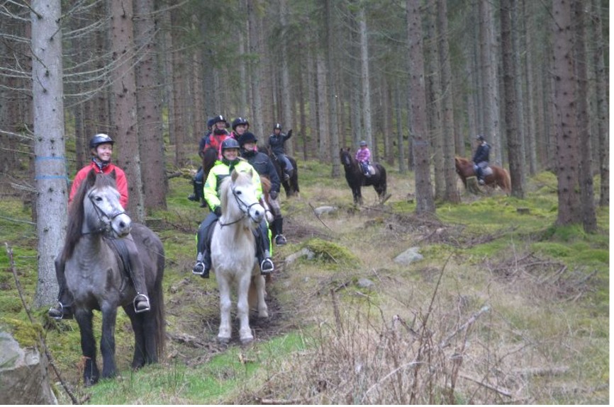 Vi rider tillsammans på hennes trevliga hästar. Lite ridvana krävs.